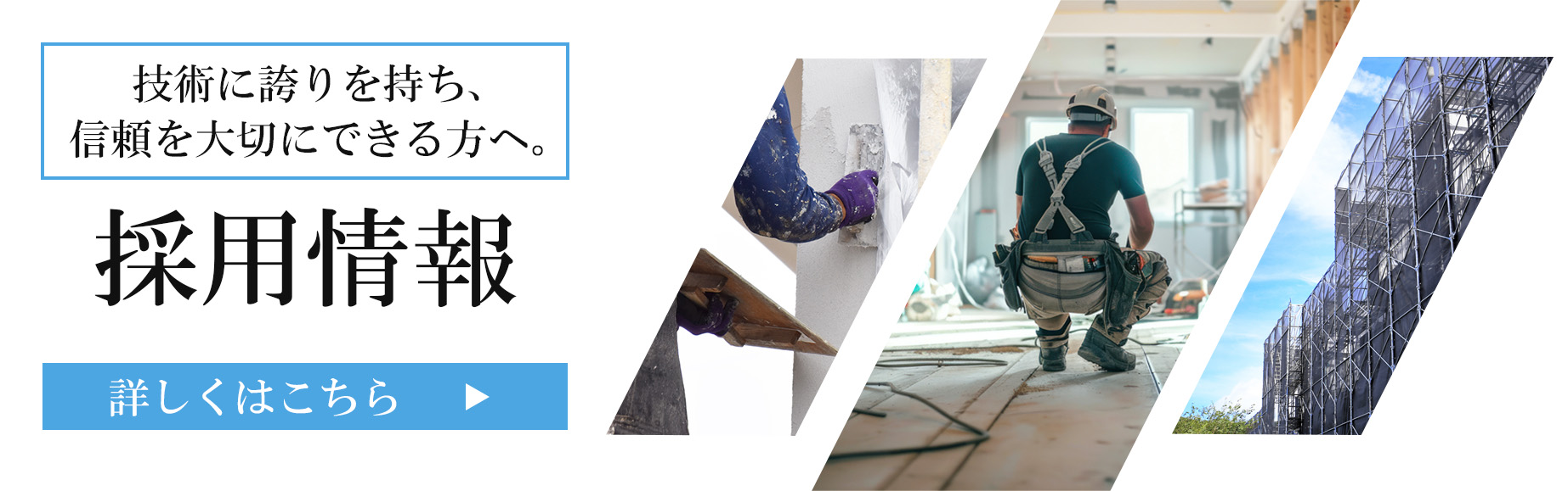 福岡市内のマンション・ビルなど改修案件が中心。 通勤時間が短く、年間を通して仕事が安定。 日曜休み・長期休暇もあり、プライベートも大切にできます。